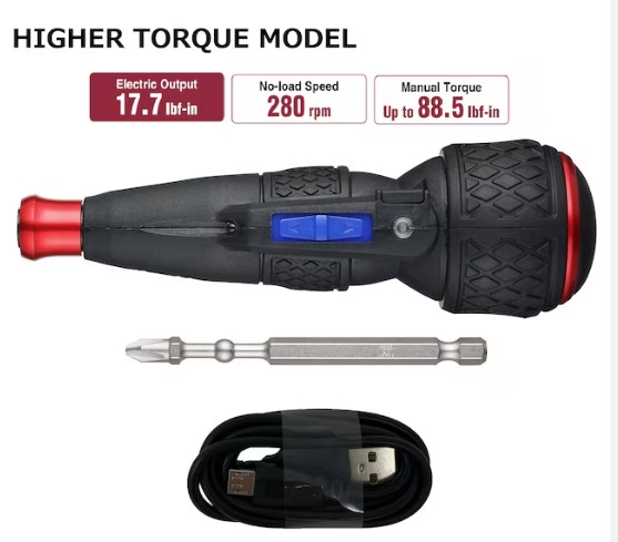 * Electric output 17.7lbf-in(2.0N-m), No-load speed 280rpm, Manual torque up to 88.5lbf-in(10N-m)